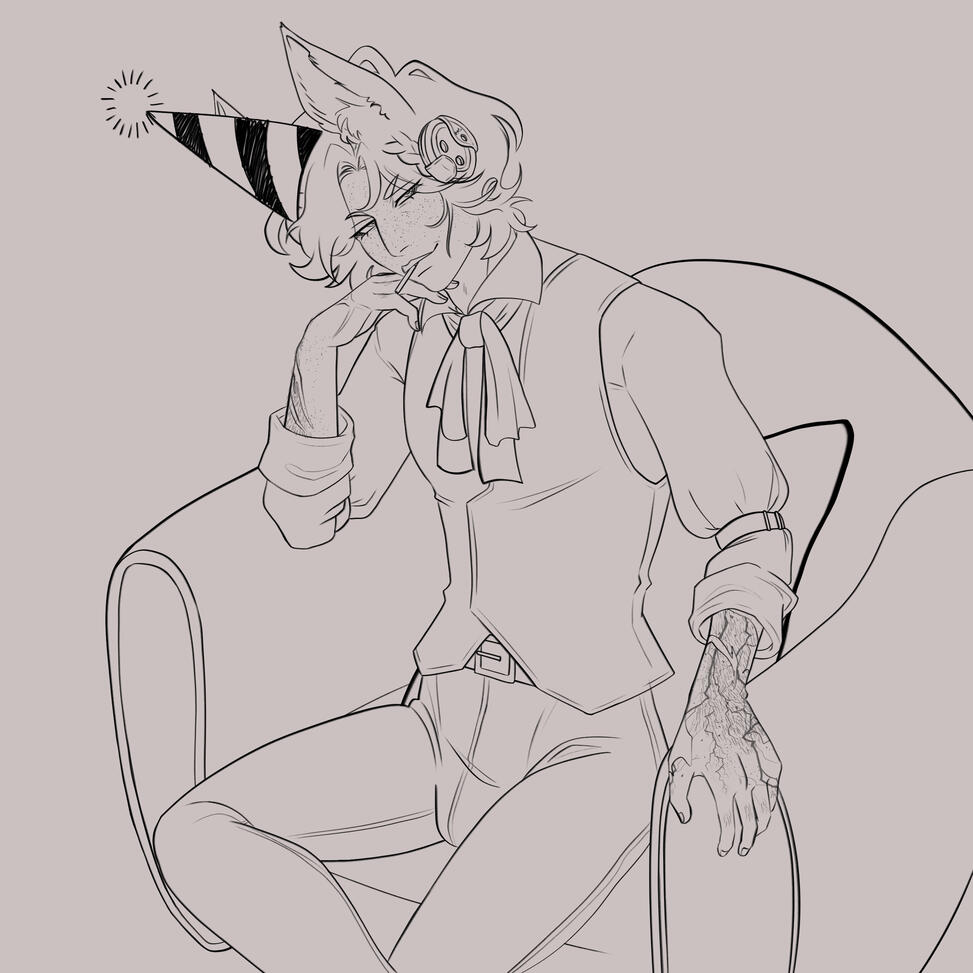 Cobalt has a rather unassuming yet confident presence. He stands at a modest height and has a lean build. He has brown eyes with near-permanent dark circles underneath, a timeworn complexion that shows him to be middle-aged, a crooked nose from multiple breaks, a typically dour expression, and a careful deliberation in the way he carries himself.He wears a regulator at all times, even after many Alexandrians have given up use of theirs. Cobalt's arms and hands are covered in scarring that branches like a levinbolt. The rest of his torso, arms, legs, and even up to his neck, bear a multitude of scars. Some of these speak of gruesome injuries that would almost certainly cause death. But it's not as if many people know what a healed fatal wound looks like, anyways.He often wears a dress shirt, vest, and a selection from his incredible collection of cravats, and keeps a small pistol on his person at all times. Cobalt has made more frequent use of his old electrope twinblades lately, ending up on jobs that aren't so different from his former profession as hunter.Though recently he's been treated with a "cure" to levinsickness, years of overexposure to levin-aspected aether and severe injury don't heal so easily. Even if his condition is much improved, Cobalt still lives with a multitude of chronic symptoms, which he goes to great lengths to conceal.